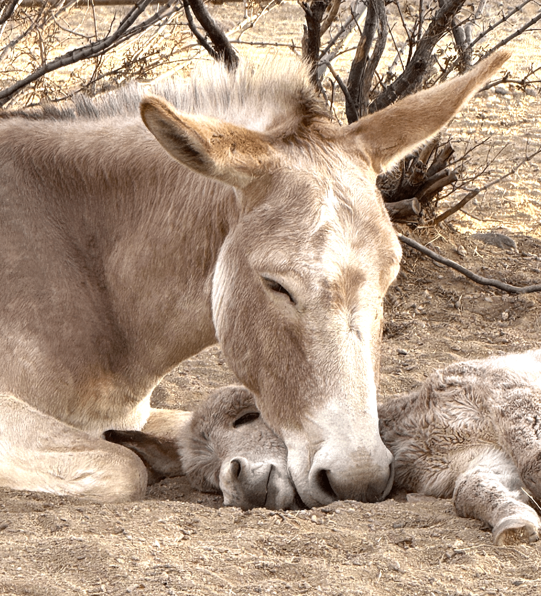Wild adult burros struggle to trust humans. Adult wild mamas separated from their offspring become chronically depressed. We’ve met dozens of wild burro and donkey mamas who’ve lost their babies. Even years later, they’re still chronically depressed. It’s really sad and inhumane.